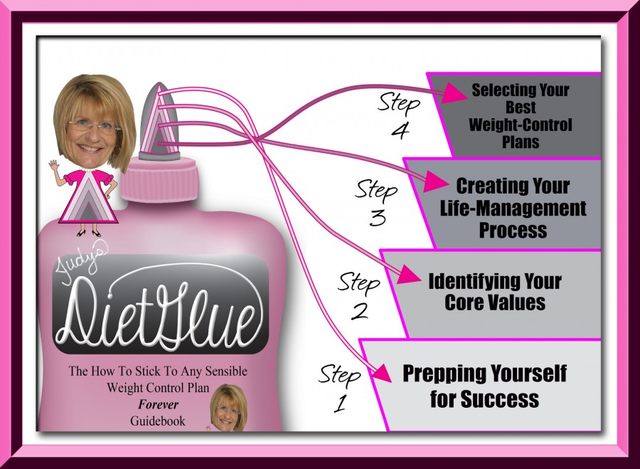 - The bottle of DietGlue that you will use to learn how to STICK to a diet and get your whole like glue together. (Notice the word DietGlue is STUCK together.)